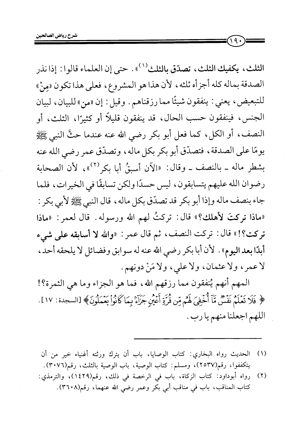 الثلث، تصدق بالثلث حتى إن العلماء قالوا: إذا نذر الصدقة بماله كله أجزأه ثلثه، لأن هذا هو المذكور فعلى هذا تكون (من) للتبعيض، يعني: ينفقون شيئا مما رزقناهم.