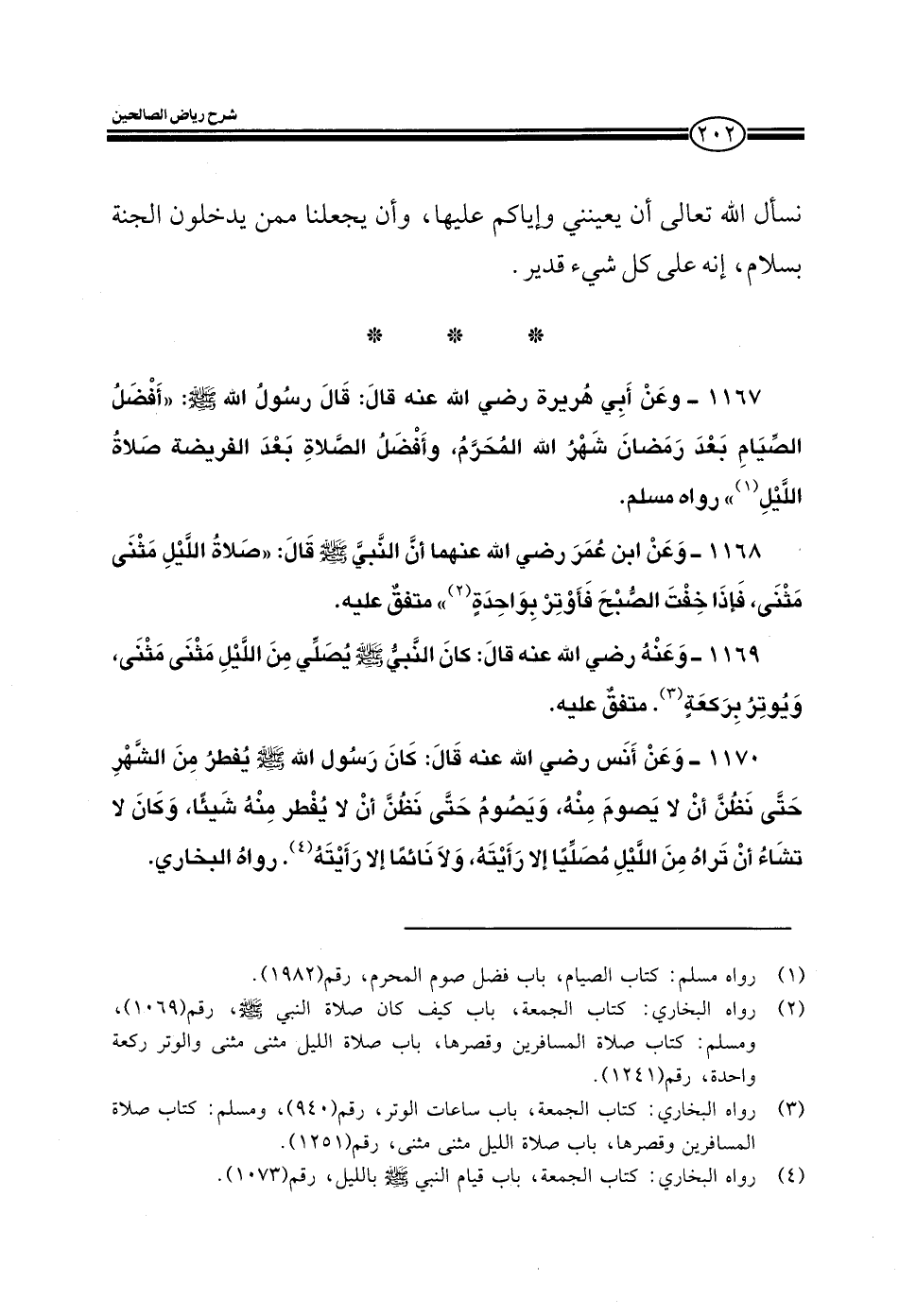 1167 - وعن أبي هريرة رضي الله عنه قال: قال رسول الله صلى الله عليه وسلم: أفضل الصيام بعد رمضان شهر الله المحرم، وأفضل الصلاة بعد الفريضة صلاة الليل.
