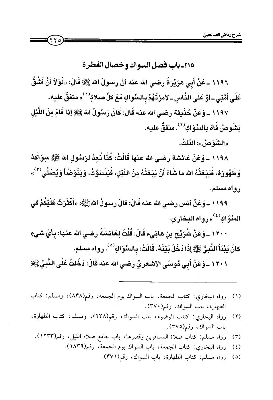 1199 - وعن أنس رضي الله عنه قال: قال رسول الله صلى الله عليه وسلم أكثرت عليكم في السواك رواه البخاري.