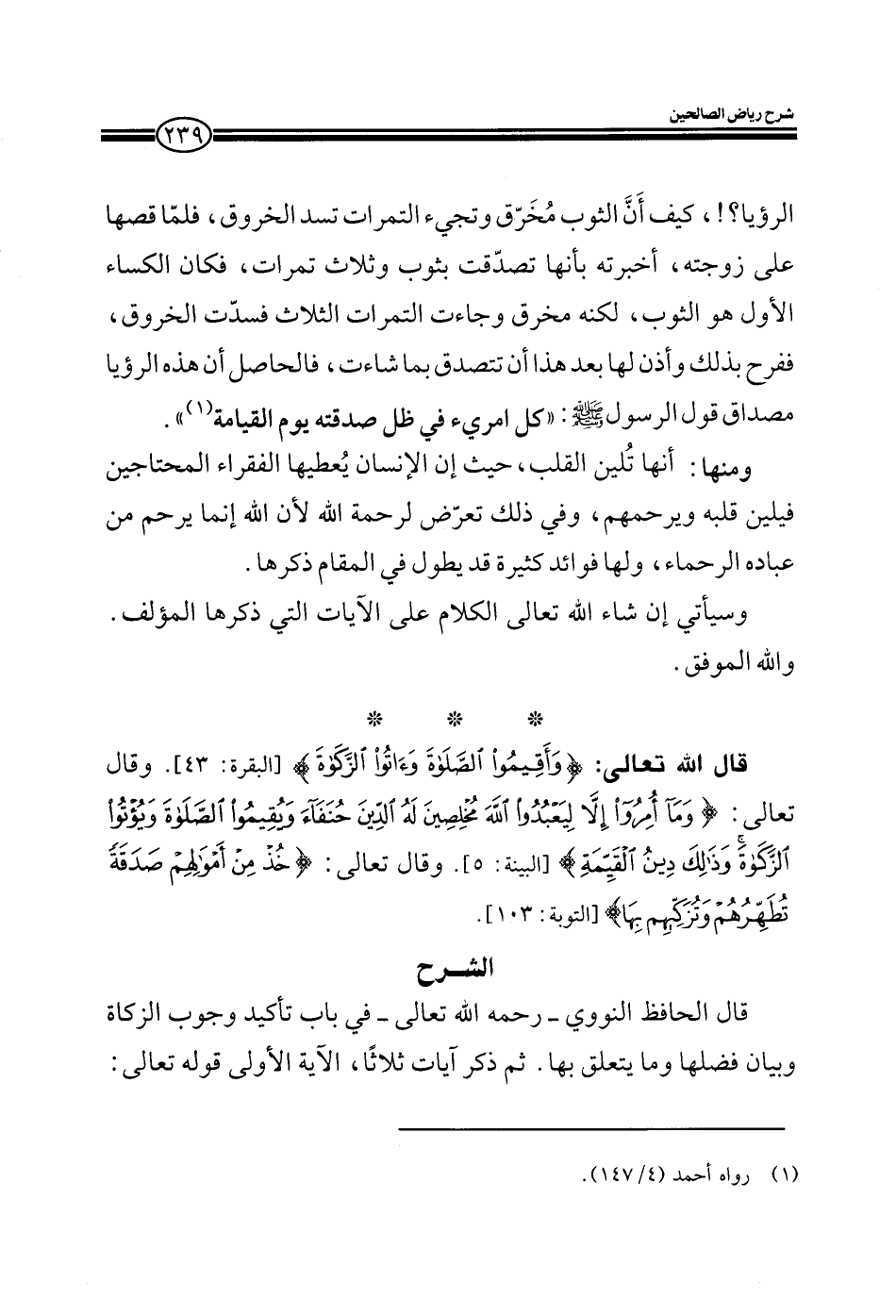 EXقال النووي رحمه الله تعالى في كتابه رياض الصالحين باب تأكيد وجوب الزكاة وبيان فضلها وما يتعلق بها ثم ذكر آيات ثلاث الآية الأولى