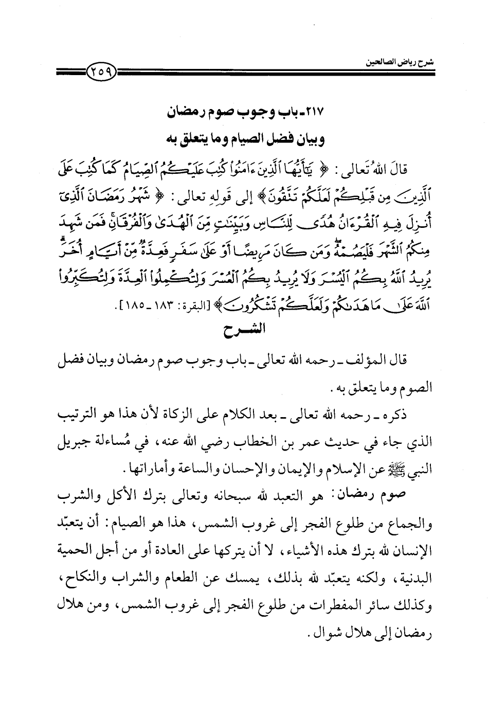 EXقال المؤلف رحمه الله في كتابه رياض الصالحين باب وجوب صوم رمضان وبيان فضل الصوم وما يتعلق به.