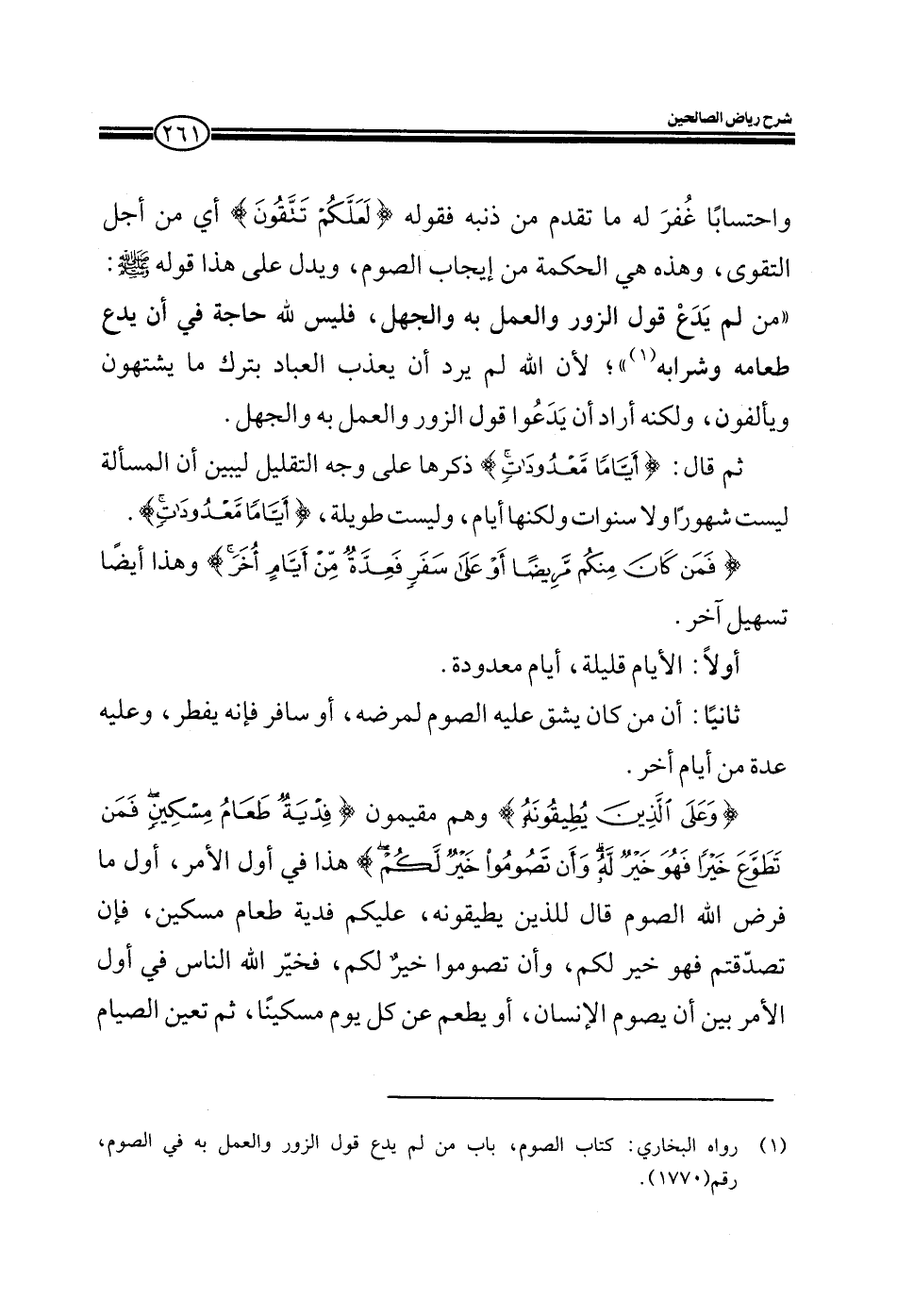 {فمن كان منكم مريضا أو على سفر فعدة من أيام أخر} وهذا أيضا تفسير آخر، أولا: الأيام قليلة أيام معدودة ثانيا: أن من كان يشق عليه الصوم أو سافر فإنه يفطر وعليه عدة من أيام أخر.