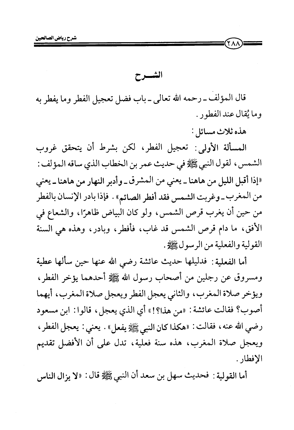 EXقال المؤلف رحمه الله تعالى في كتابه رياض الصالحين باب فضل تعجيل الفطر وما يفطر به وما يقال عند الفطور.