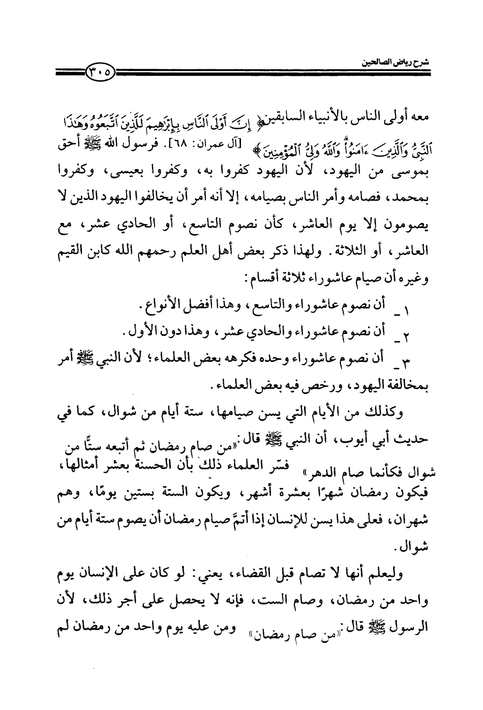 ولهذا ذكر بعض أهل العلم كابن القيم وغيره أن صيام عاشوراء ثلاثة أقسام: 1 - أن يصوم عاشوراء والتاسع وهذا أفضل الأنواع.