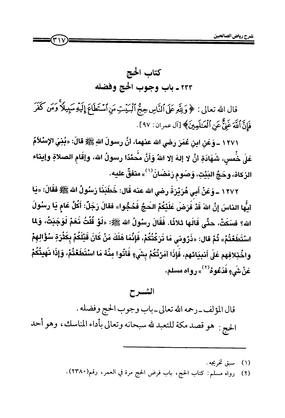 EXقال المؤلف رحمه الله تعالى في كتابه رياض الصالحين باب وجوب الحج وفضله.