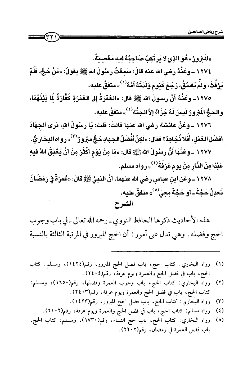 1276 - وعن عائشة رضي الله عنها قالت: قلت يا رسول الله نرى الجهاد أفضل العمل أفلا نجاهد فقال: لكن أفضل الجهاد حج مبرور رواه البخاري.