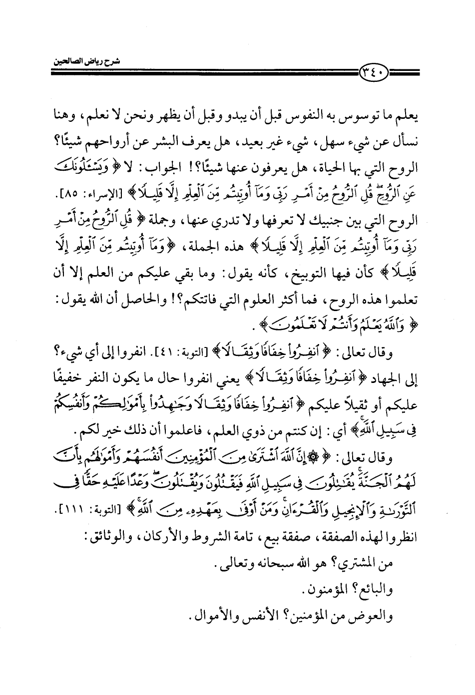 وقال تعالى:} إن الله اشترى من المؤمنين أنفسهم وأموالهم بأن لهم الجنة يقاتلون في سبيل الله فيقتلون ويقتلون وعدا عليه حقا في التوراة والأنجيل والقرآن ومن أوفى بعهده من الله {انظروا لهذه الصفقة صفقة بيع تامة الشروط والأركان والوسائل: من المشتري الله والبائع المؤمنون والعوض من المؤمنين الأنفس والأموال