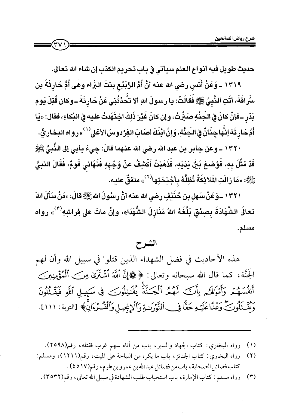 EXهذه الأحاديث في فضل الشهداء الذين قتلوا في سبيل الله وأن لهم الجنة كما قال الله سبحانه وتعالى: إن الله اشترى من المؤمنين أنفسهم وأموالهم بأن لهم الجنة يقاتلون في سبيل الله فيقتلون ويقتلون وعدا عليه حقا في التوراة والإنجيل والقرآن