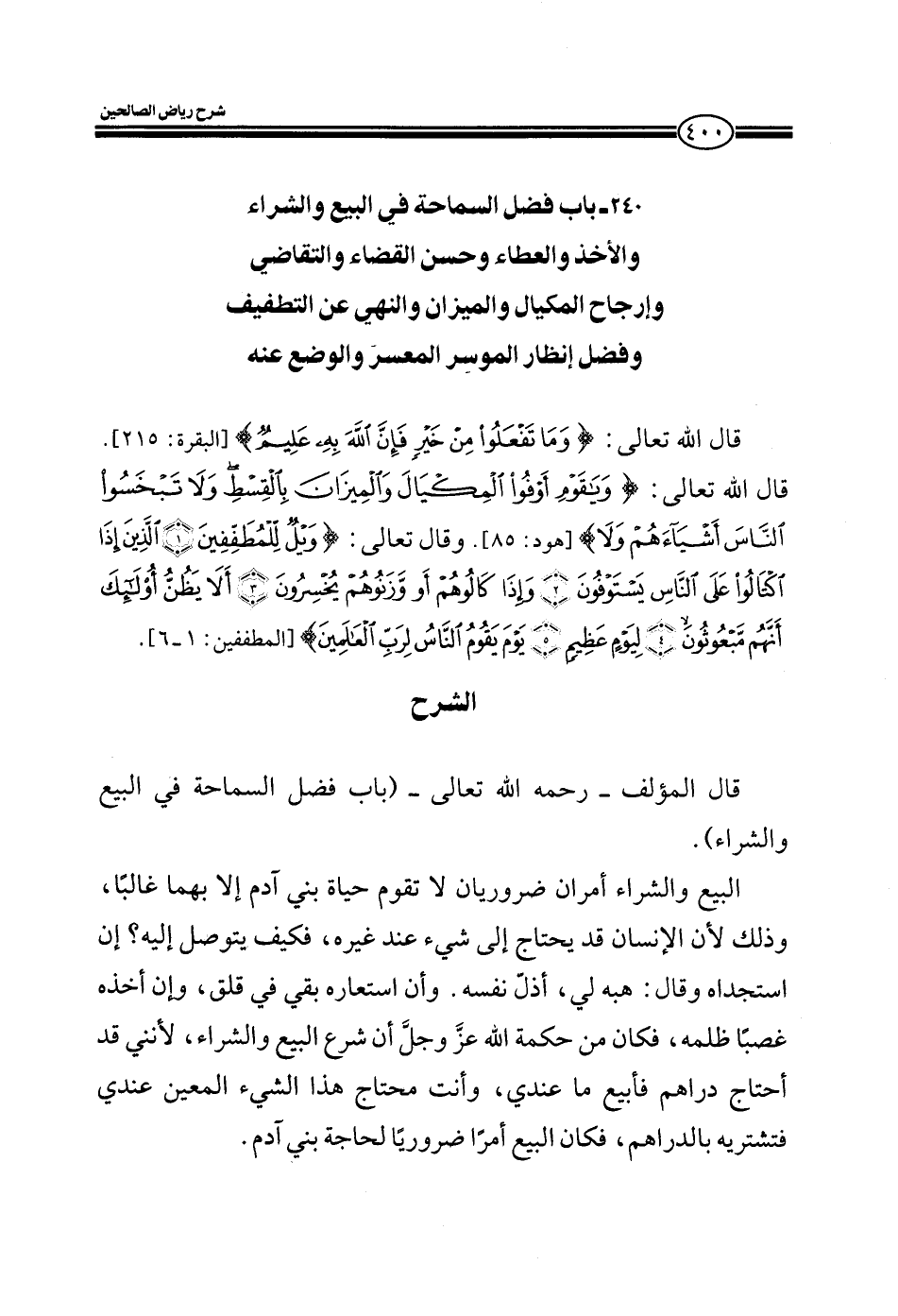EXقال المؤلف رحمه الله في كتابه رياض الصالحين باب فضل السماحة في البيع والشراء.