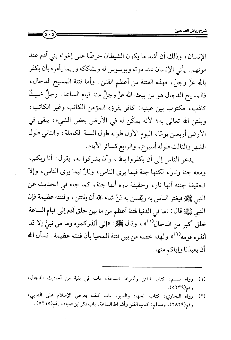 الإنسان وذلك أن أشد ما يكون الشيطان حرصا على إغواء بني آدم عند موتهم يأتي للإنسان عند موته ويوسوس له ويشككه وربما يأمره بأن يكفر بالله عز وجل فهذه الفتنة من أعظم الفتن وأما فتنة المسيح الدجال فالمسيح الدجال هو من يبعثه الله عز وجل عند قيام الساعة رجل خبيث كاذب مكتوب بين عينيه كافر يقرؤوه المؤمن الكاتب وغير الكاتب ويفتن الله تعالى الناس به لأنه يمكن له في الأرض بعض الشيء يبقي في الأرض أربعين يوما اليوم الأول طوله طول السنة الكاملة والثاني طول الشهر والثالث طوله أسبوع والرابع كسائر الأيام.