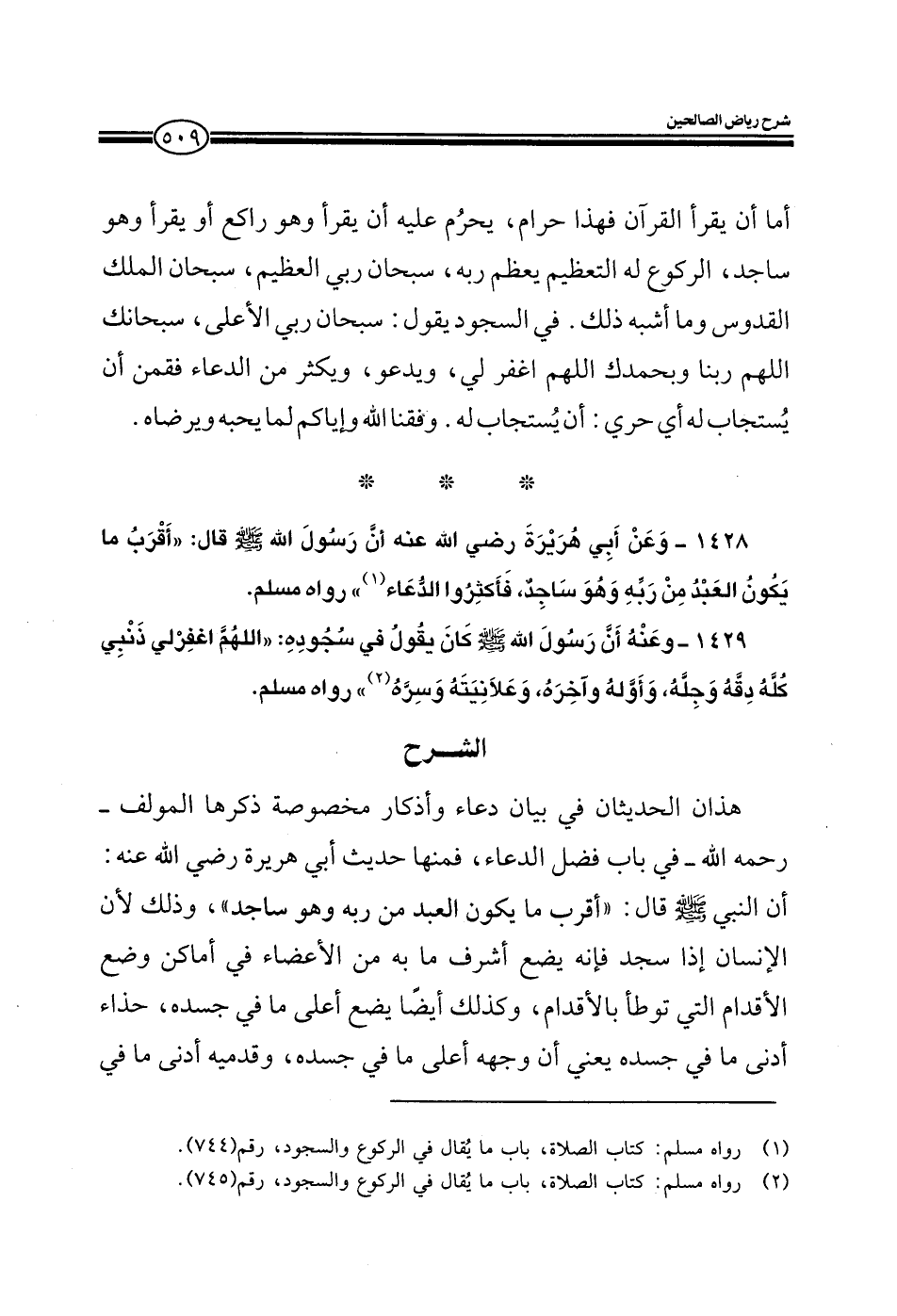 1428 - وعن أبي هريرة رضي الله عنه أن رسول الله صلى الله عليه وسلم قال أقرب ما يكون العبد من ربه وهو ساجد فأكثروا الدعاء رواه مسلم.