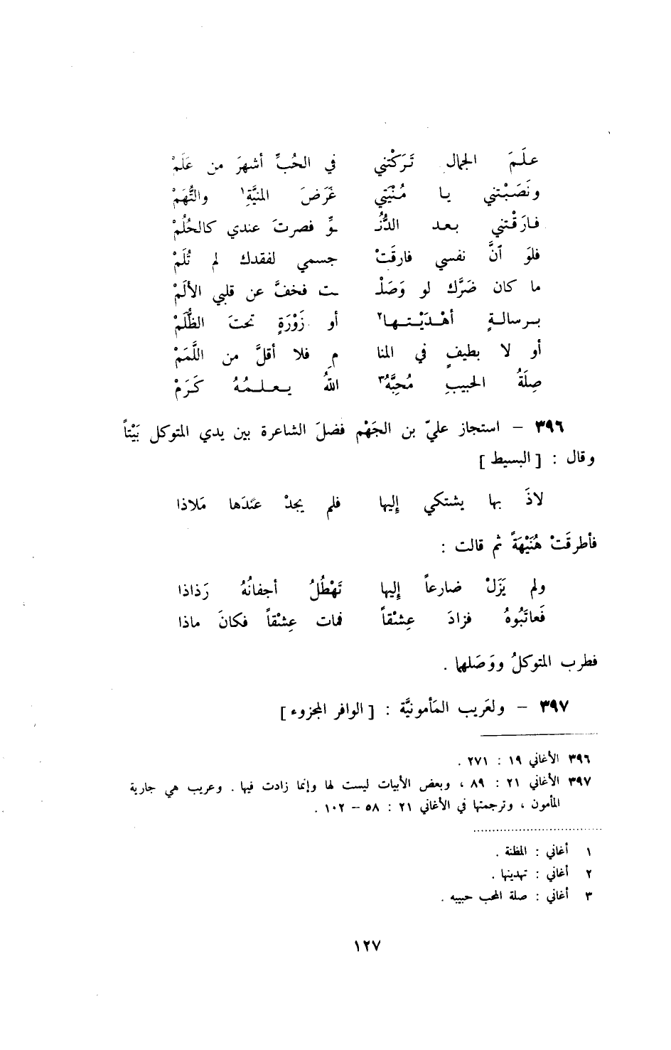 استجاز علي بن الجهم فضل الشاعرة بين يدي المتوكل بيتاً وقال: البسيط