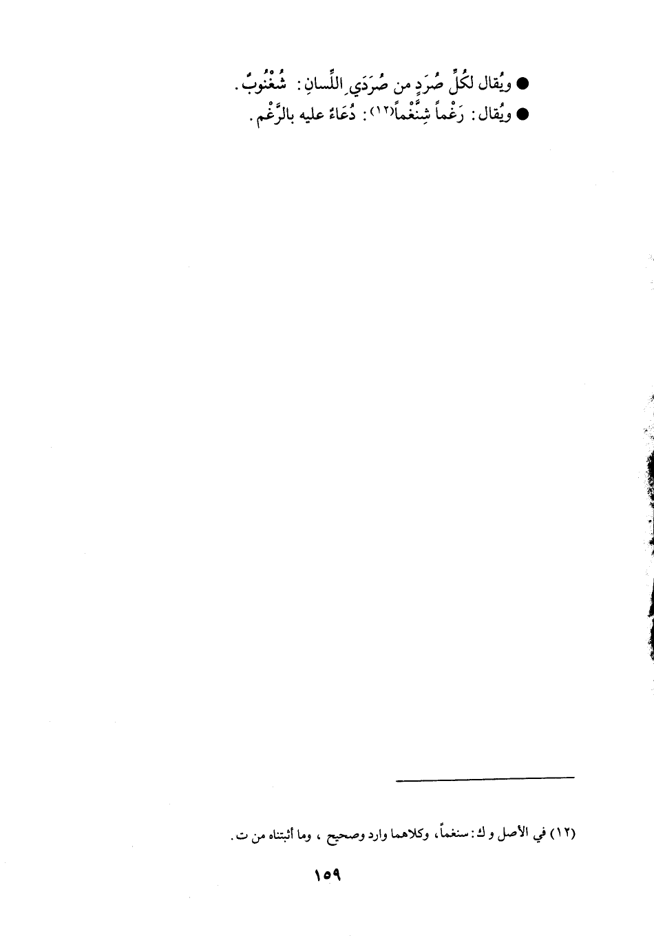 ويُقال لكُلِّ صُرَدٍ من صُرَدَي اللِّسانِ شُغْنُوبٌ . ويُقال رَغْماً شِنَّغْماً دُعَاءٌ عليه بالرغْم .