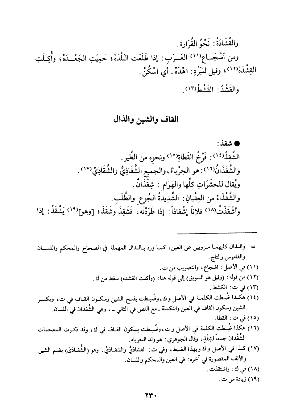 شقذ الشَّقِذ : فَرْخُ القَطاةِ ونحوِه من الطَّير . والشَّقَذَانُ : هو الحِرْباءُ ، والجميع الشُّقَاذِيُّ والشَّقَاذِيْ . ويُقال للحشَرَاتِ كلِّها والهَوَام : شِقْذَانٌ . والشَقْذَاءُ من العِقْبانِ : الشَّدِيدةُ الجُوع والطِّلَبِ . وأشقذت فلاناً إشقاذاً : إذا طردته ، فشقذ وشقذ ؛ وهو يشقذ : إذا