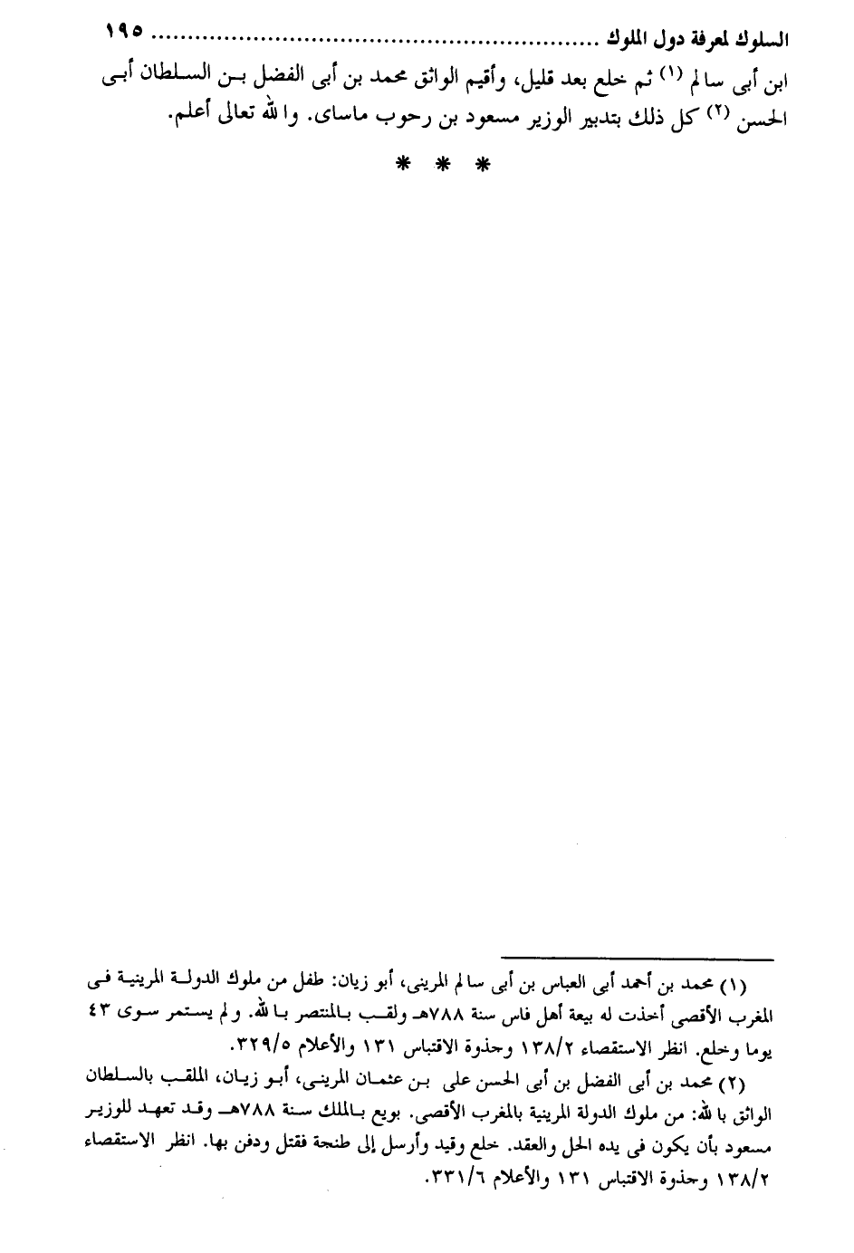 ابْن أبي سَالم ثمَّ خلع بعد قَلِيل وأقيم الواثق مُحَمَّد بن أبي الْفضل بن السُّلْطَان أبي الْحسن كل ذَلِك بتدبير الْوَزير مَسْعُود بن رحوب ماساي وَالله تَعَالَى أعلم.