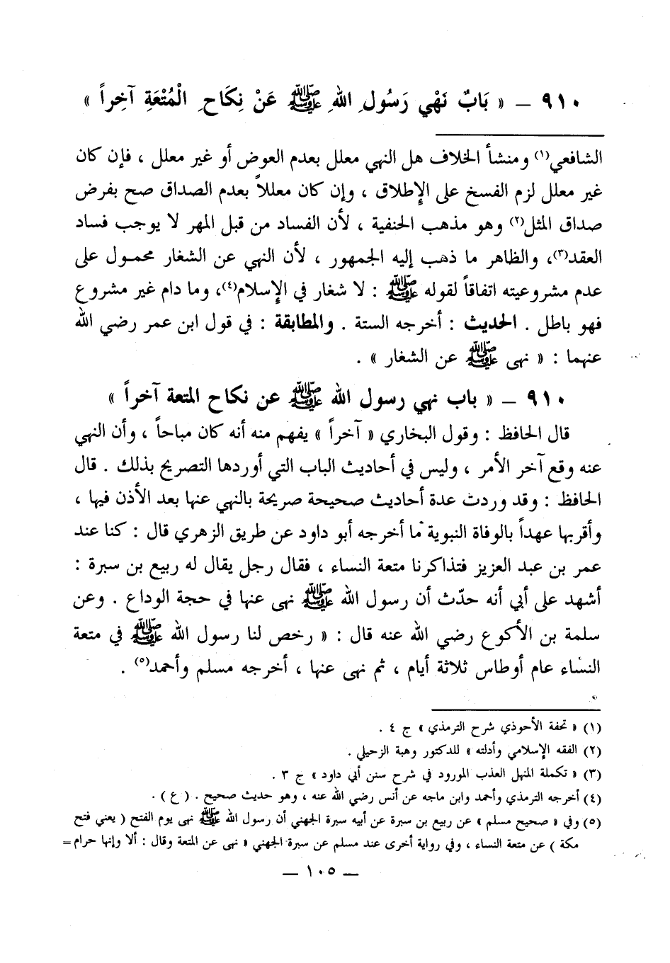 910 - " بَابٌ نَهْي رَسُولِ اللهِ - صلى الله عليه وسلم - عَنْ نِكَاحِ الْمُتْعَةِ آخِراً "