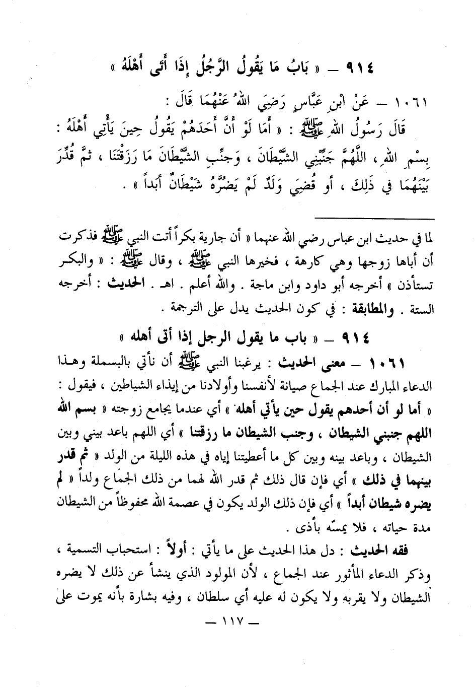 914 - " بَابُ مَا يَقُولُ الرَّجُلُ إِذَا أتى أهْلَهُ "