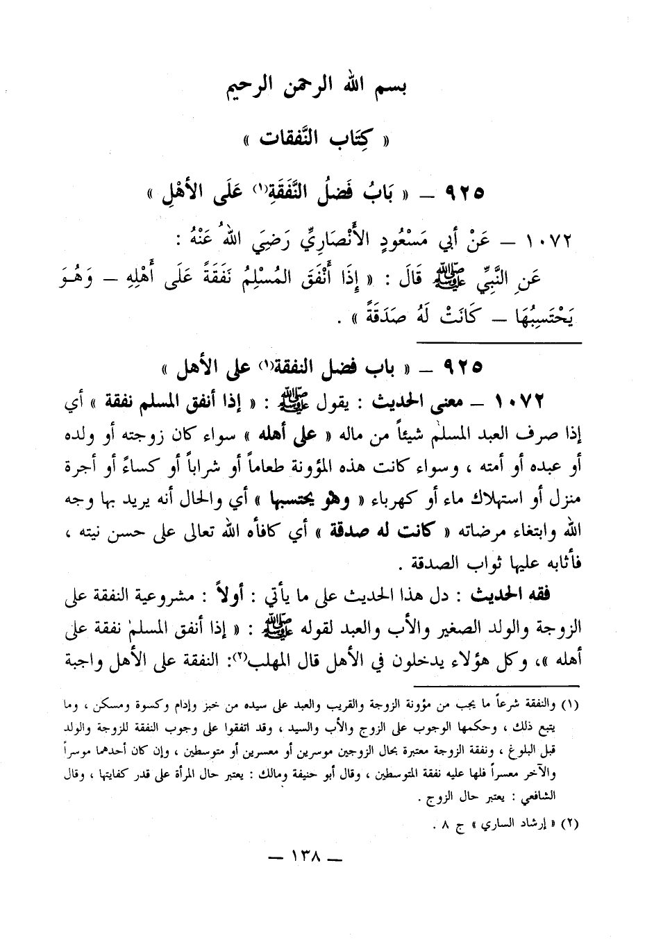 925 - " باب فضل النفقة (1) على الأهل "