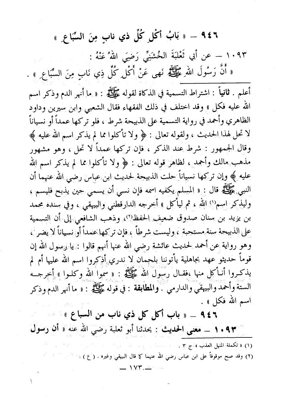 946 - " باب أكل كل ذي ناب من السباع "