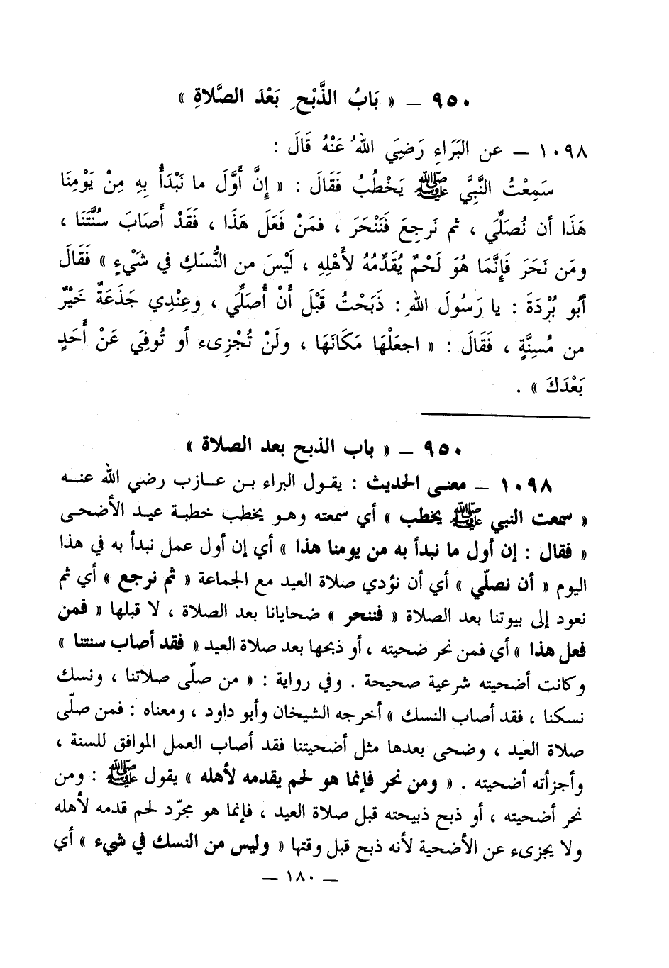 950 - " بَابُ الذَّبْحِ بَعْدَ الصَّلاةِ "