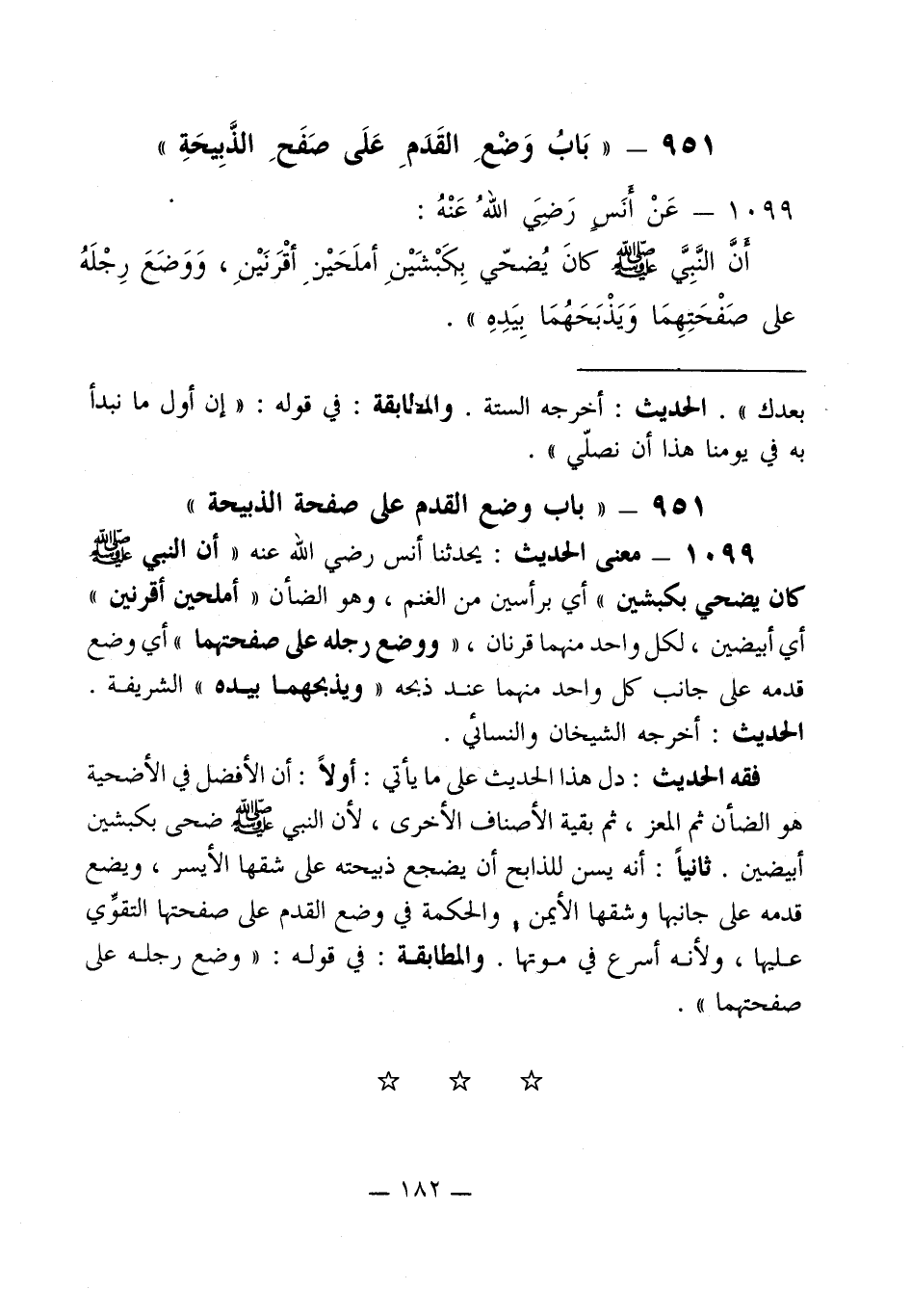 951 - " باب وضع القدم على صفحة الذبيحة "