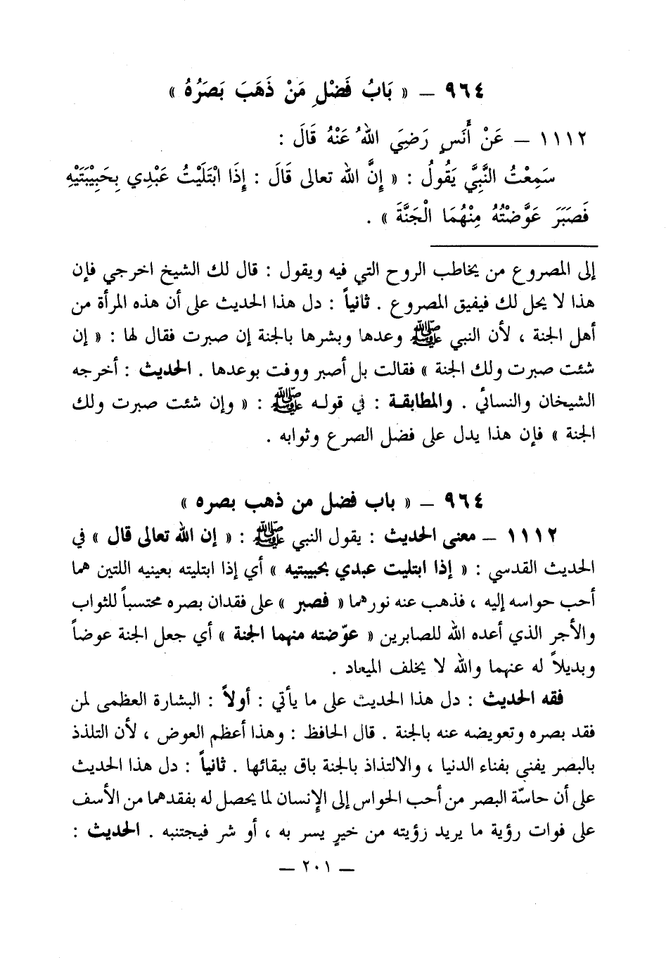 964 - " بَابُ فضلِ مَنْ ذَهَبَ بَصَرُهُ "