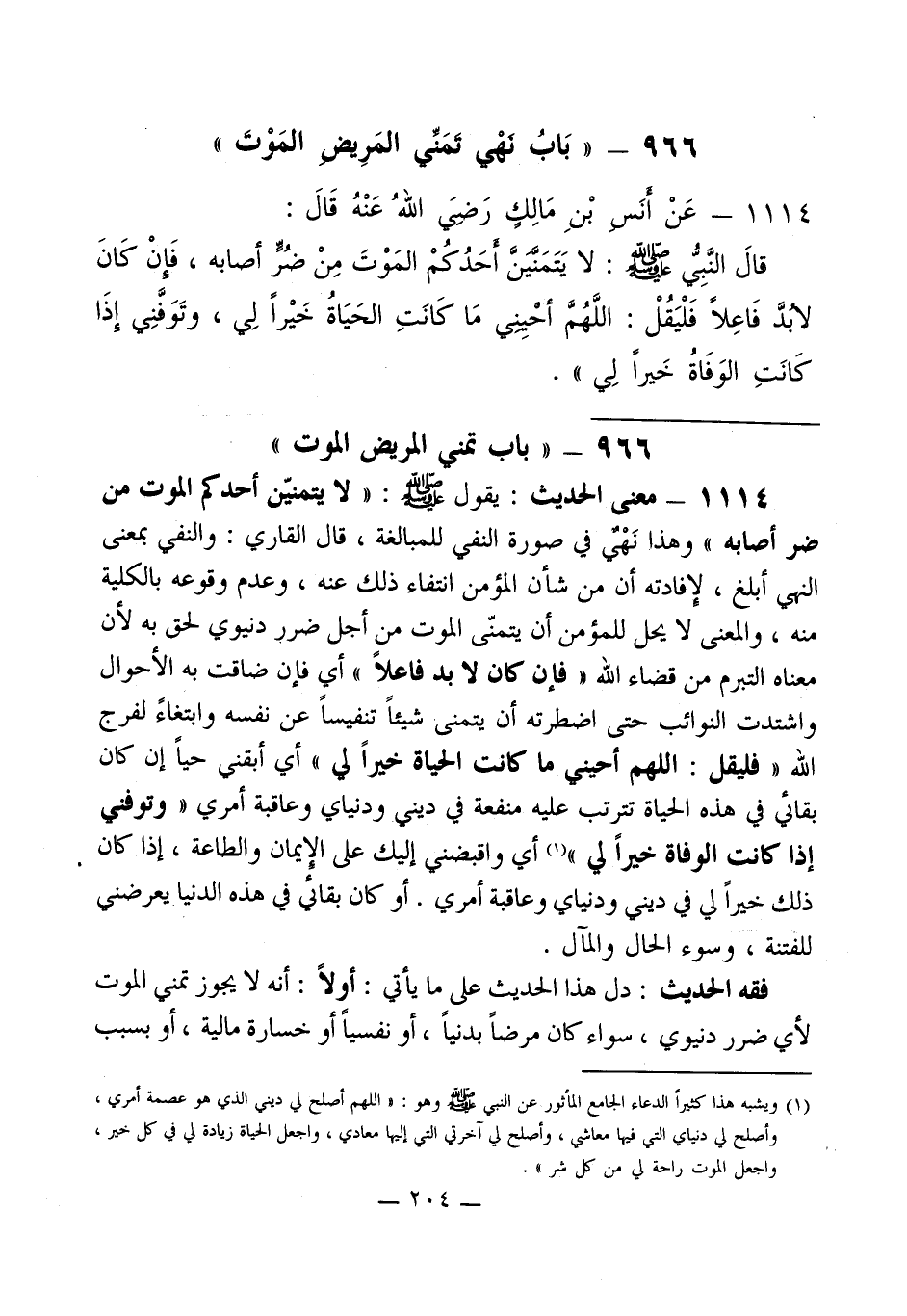 966 - " بَابُ نهْي تمَنِّي المَرِيض المَوْت "
