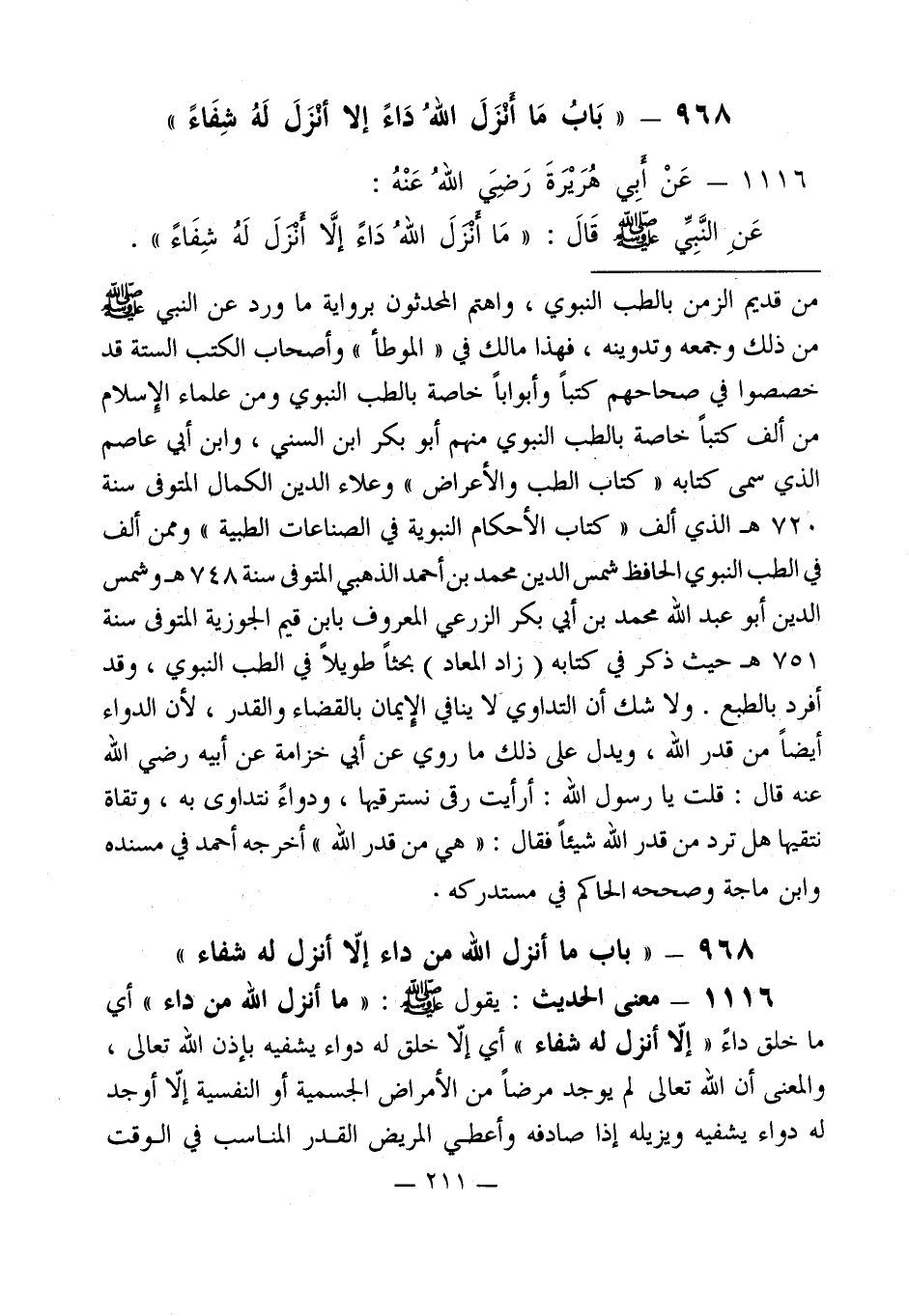 968 - " بَابُ مَا أنْزَلَ اللهُ دَاءً إلا أنزَلَ لَهُ شِفَاءً "