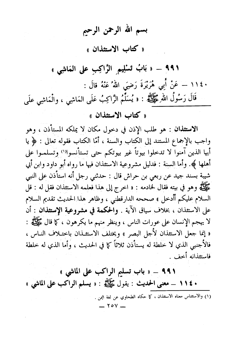 991 - " بَابُ تسْلِيمِ الرَّاكِبِ على المَاشِي "
