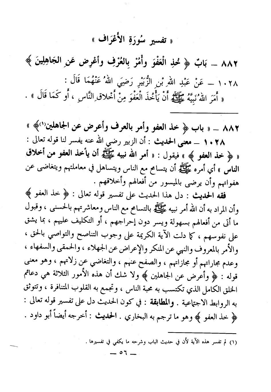 882 - " باب (خُذِ الْعَفْوَ وَأْمُرْ بِالْعُرْفِ وَأَعْرِضْ عَنِ الْجَاهِلِينَ (¬1)) "