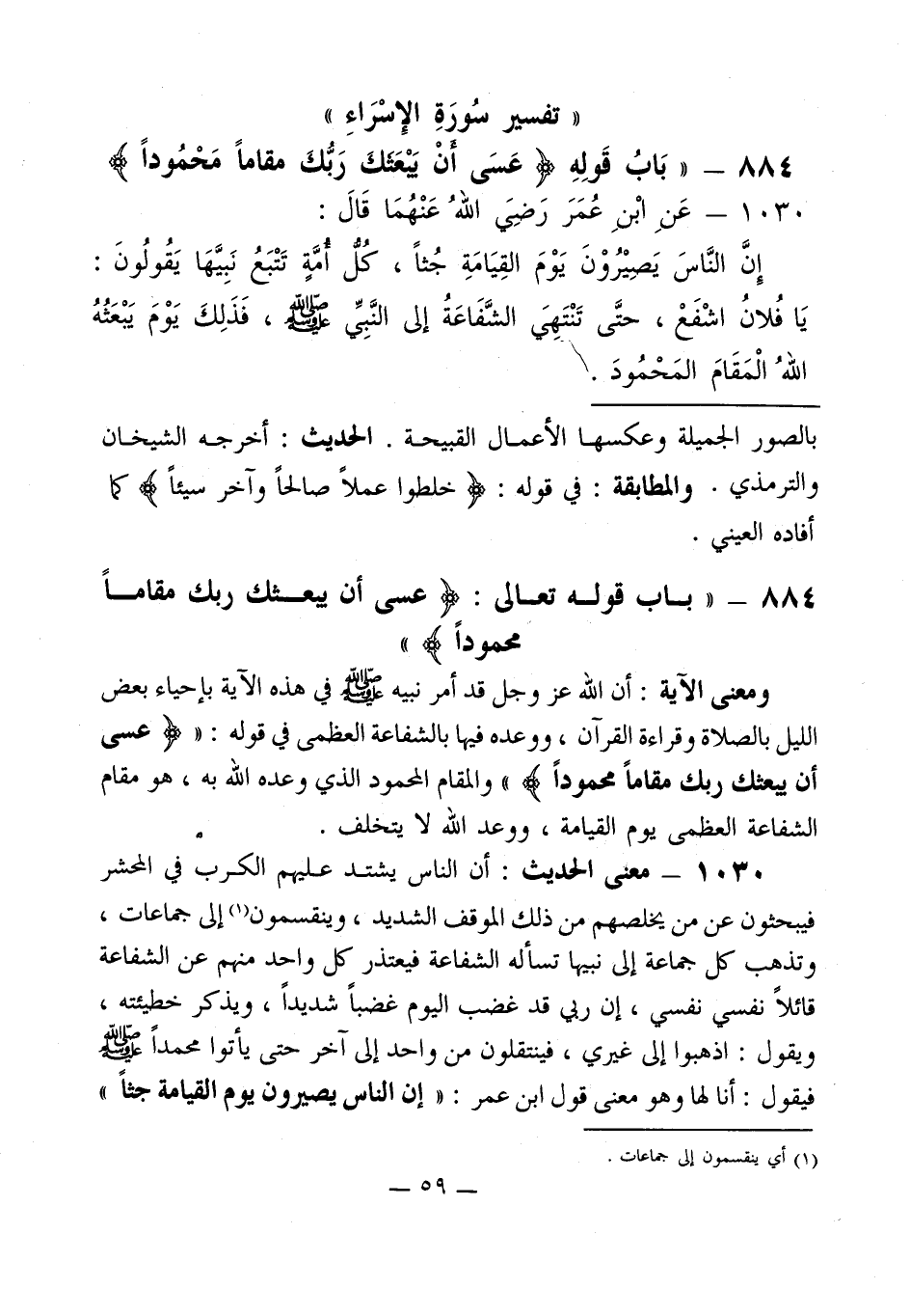 884 - " بَابُ قَولِهِ (عَسَى أَنْ يَبْعَثَكَ رَبُّكَ مَقَامًا مَحْمُودًا)