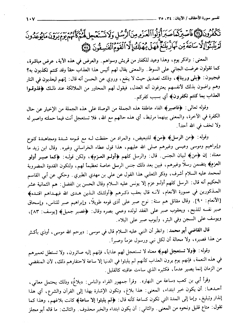 قال القاضي أبو محمد: وانظر أن النبي عليه السلام قال في موسى: «يرحم الله موسى، أوذي بأكثر من هذا فصبر» ، ولا محالة أن لكل نبي ورسول عزما وصبرا.