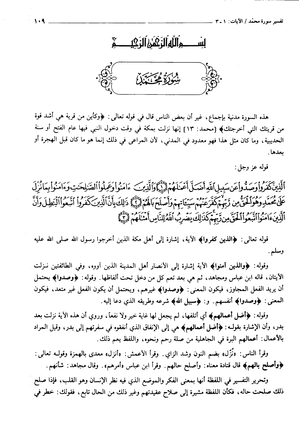 [سورة محمد (٤٧) : الآيات ١ الى ٣]