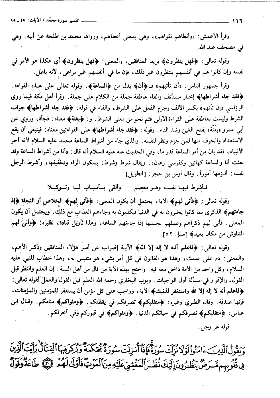 فَاعْلَمْ أَنَّهُ لا إِلهَ إِلَّا اللَّهُ وَاسْتَغْفِرْ لِذَنْبِكَ الآية، وواجب على كل مؤمن أن يستغفر للمؤمنين والمؤمنات، فإنها صدقة. وقال الطبري وغيره: مُتَقَلَّبَكُمْ تصرفكم في يقظتكم. وَمَثْواكُمْ منامكم. وقال ابن عباس: مُتَقَلَّبَكُمْ تصرفكم في حياتكم الدنيا. وَمَثْواكُمْ في قبوركم وفي آخرتكم.