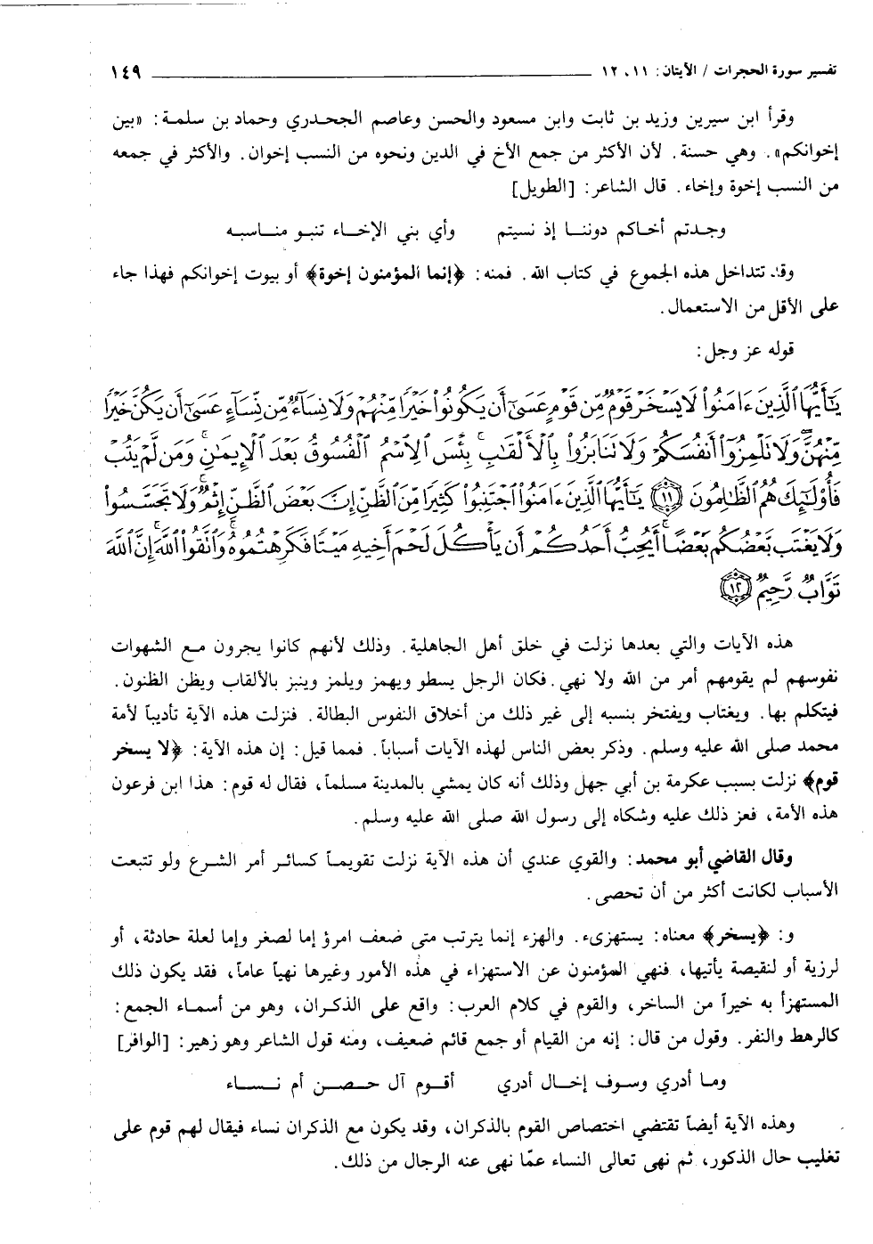 [سورة الحجرات (٤٩) : الآيات ١١ الى ١٢]
