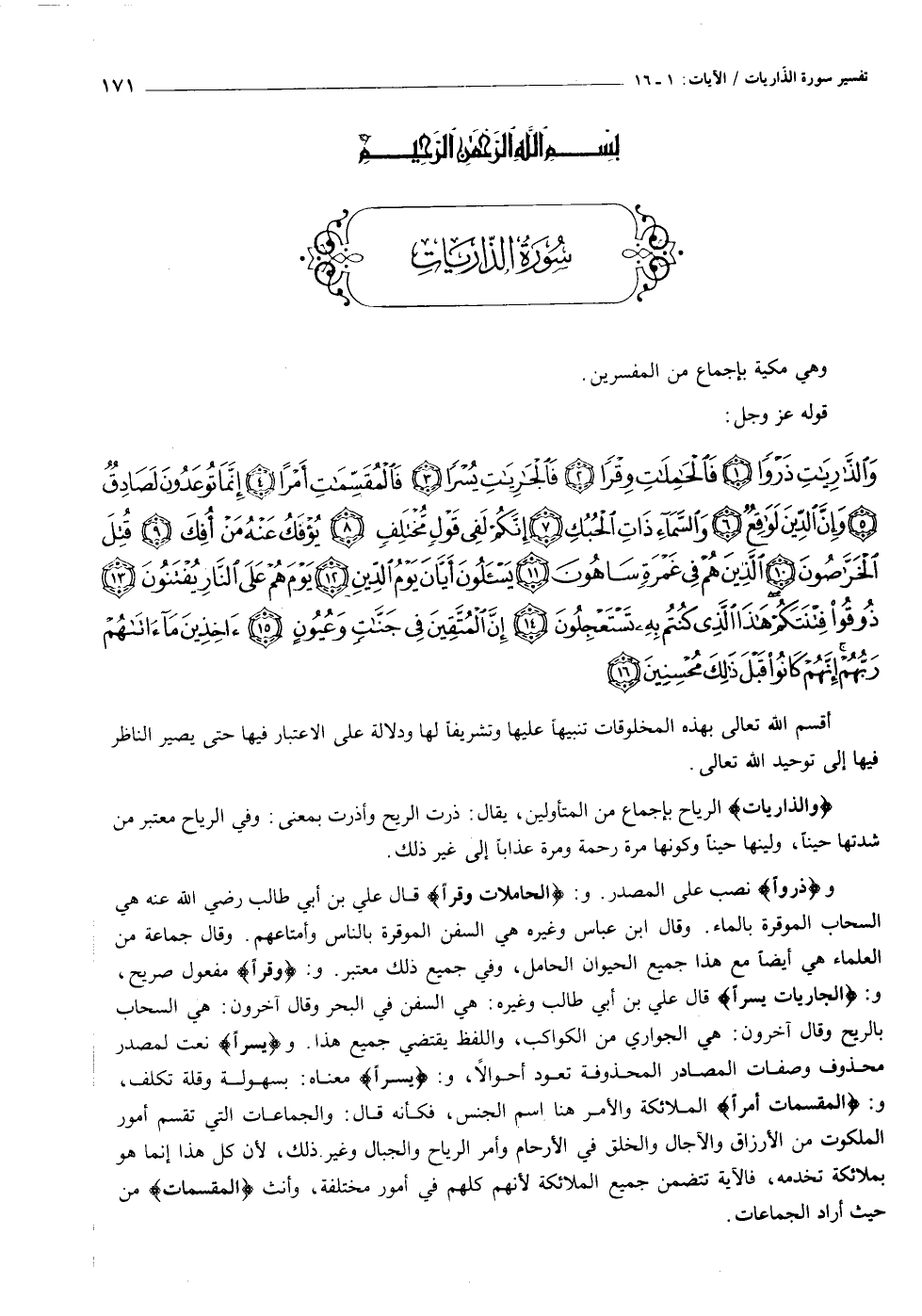 [سورة الذاريات (٥١) : الآيات ١ الى ١٦]