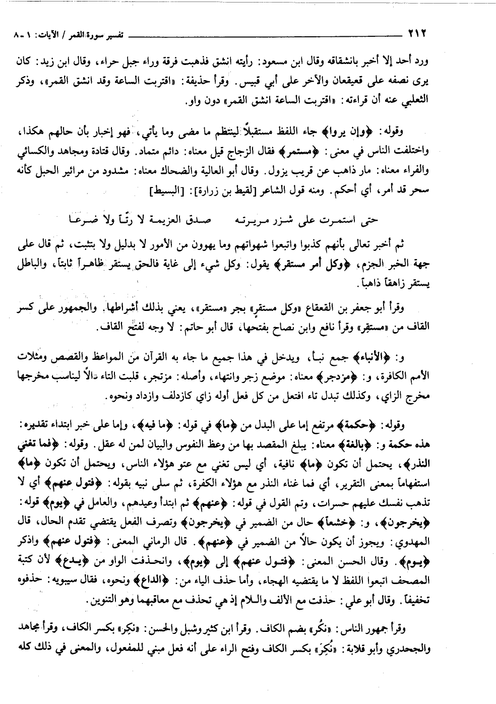 ثم أخبر تعالى بأنهم كذبوا واتبعوا شهواتهم وما يهوون من الأمور لا بدليل ولا بتثبت، ثم قال على جهة الخبر الجزم، وَكُلُّ أَمْرٍ مُسْتَقِرٌّ يقول: وكل شيء إلى غاية فالحق يستقر ظاهرا ثابتا، والباطل يستقر زاهقا ذاهبا.