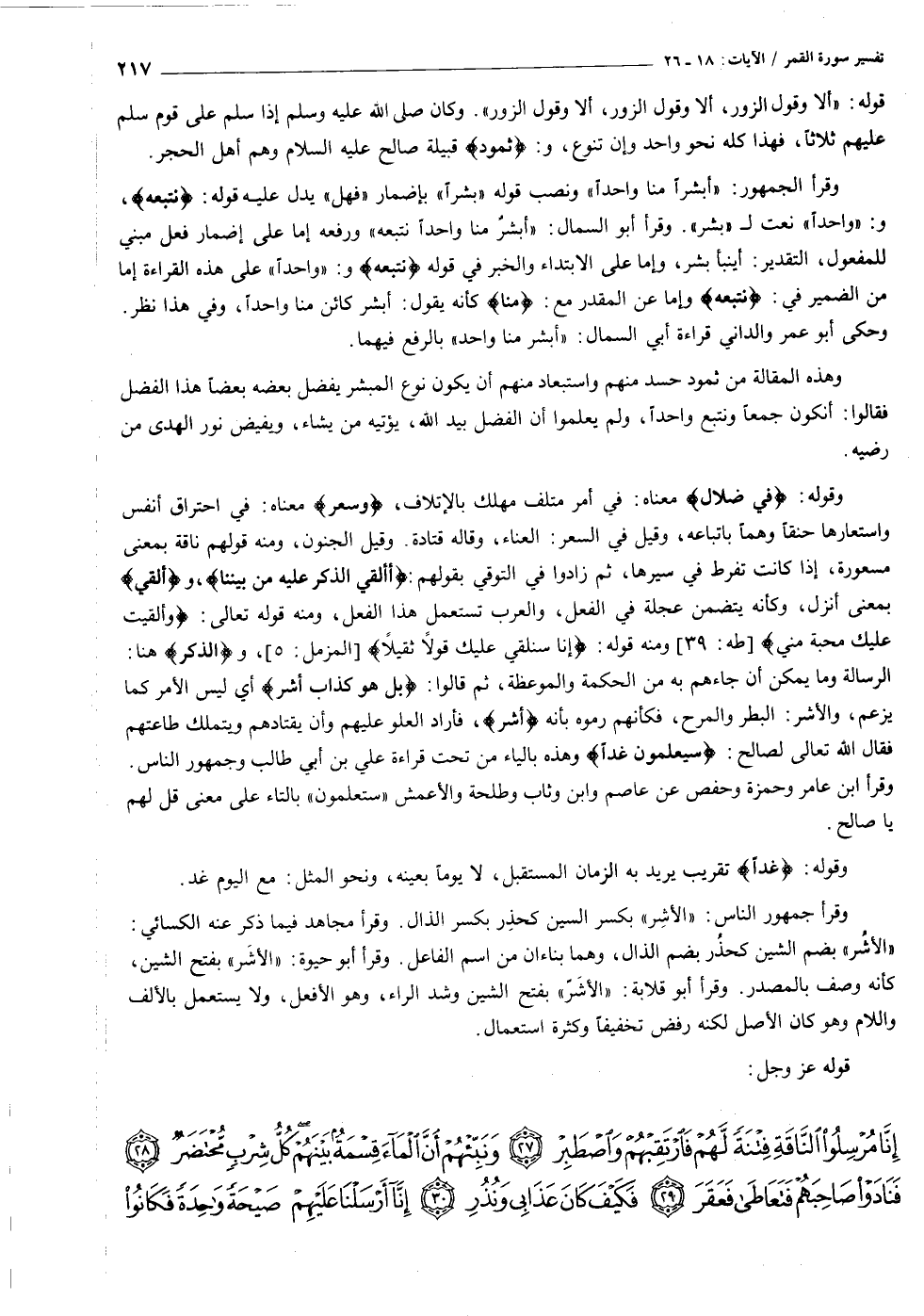 وهذه المقالة من ثمود حسد منهم واستبعاد منهم أن يكون نوع المبشر يفضل بعضه بعضا هذا الفضل فقالوا: أنكون جمعا ونتبع واحدا، ولم يعلموا أن الفضل بيد الله، يؤتيه من يشاء، ويفيض نور الهدى من رضيه.