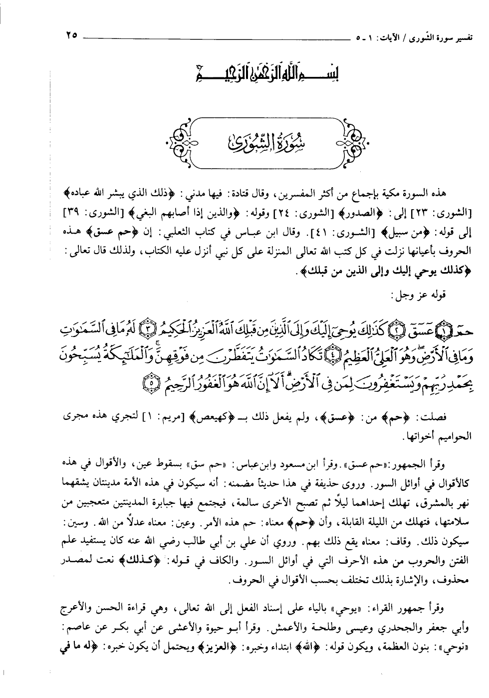 [سورة الشورى (٤٢) : الآيات ١ الى ٥]