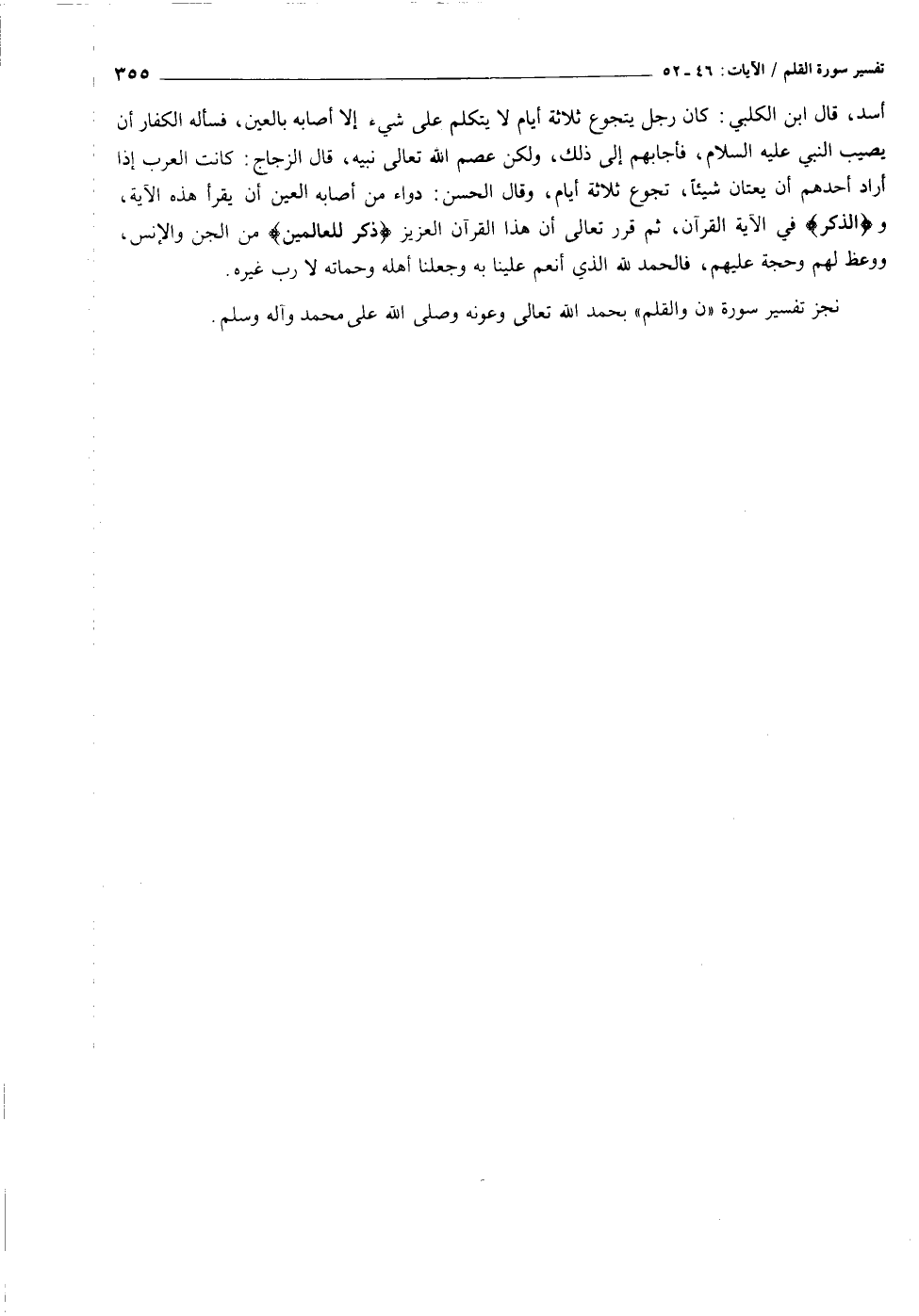 نجز تفسير سورة «ن والقلم» بحمد الله تعالى وعونه وصلى الله على محمد وآله وسلم.