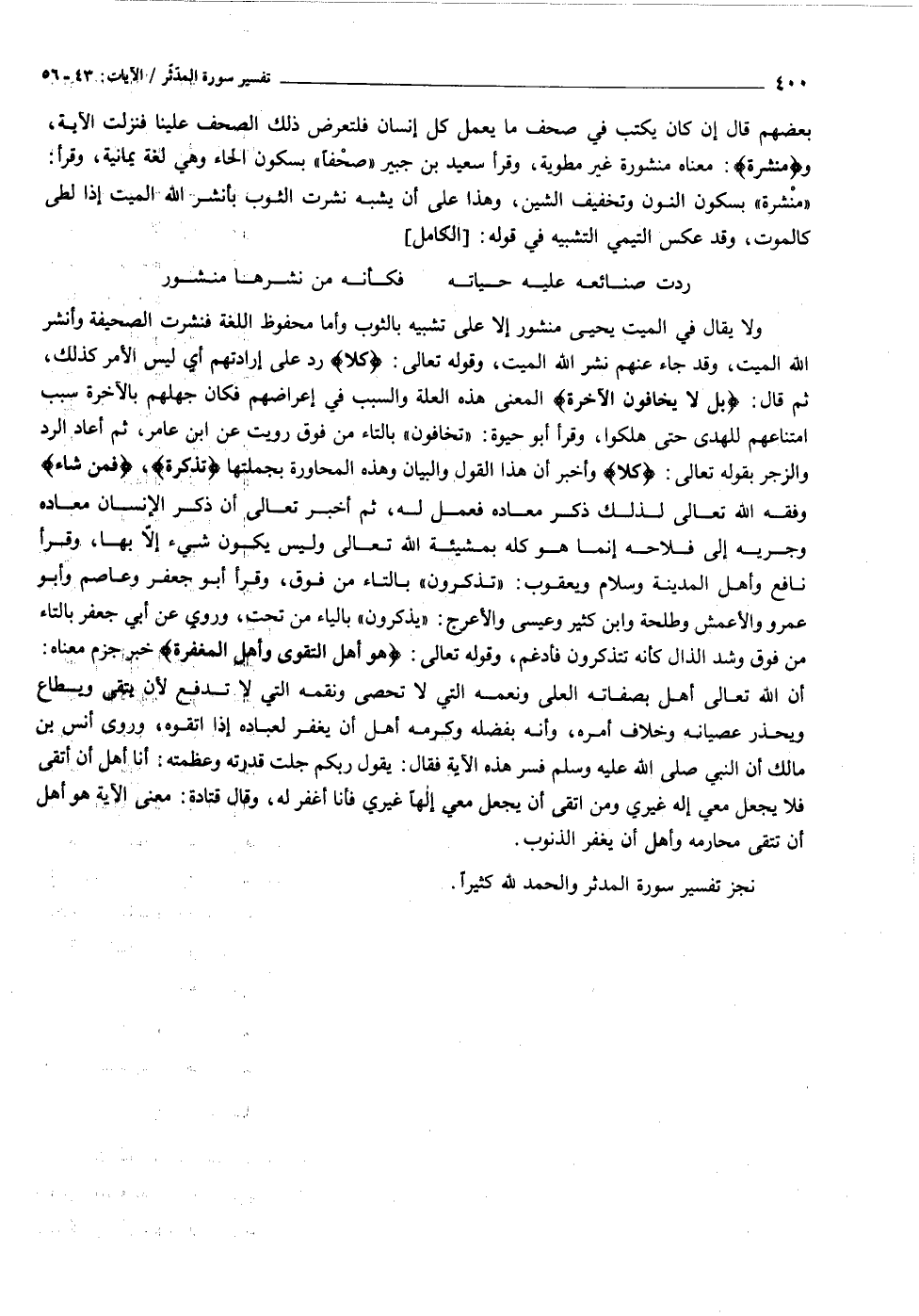 نجز تفسير سورة المدثر والحمد لله كثيرا.