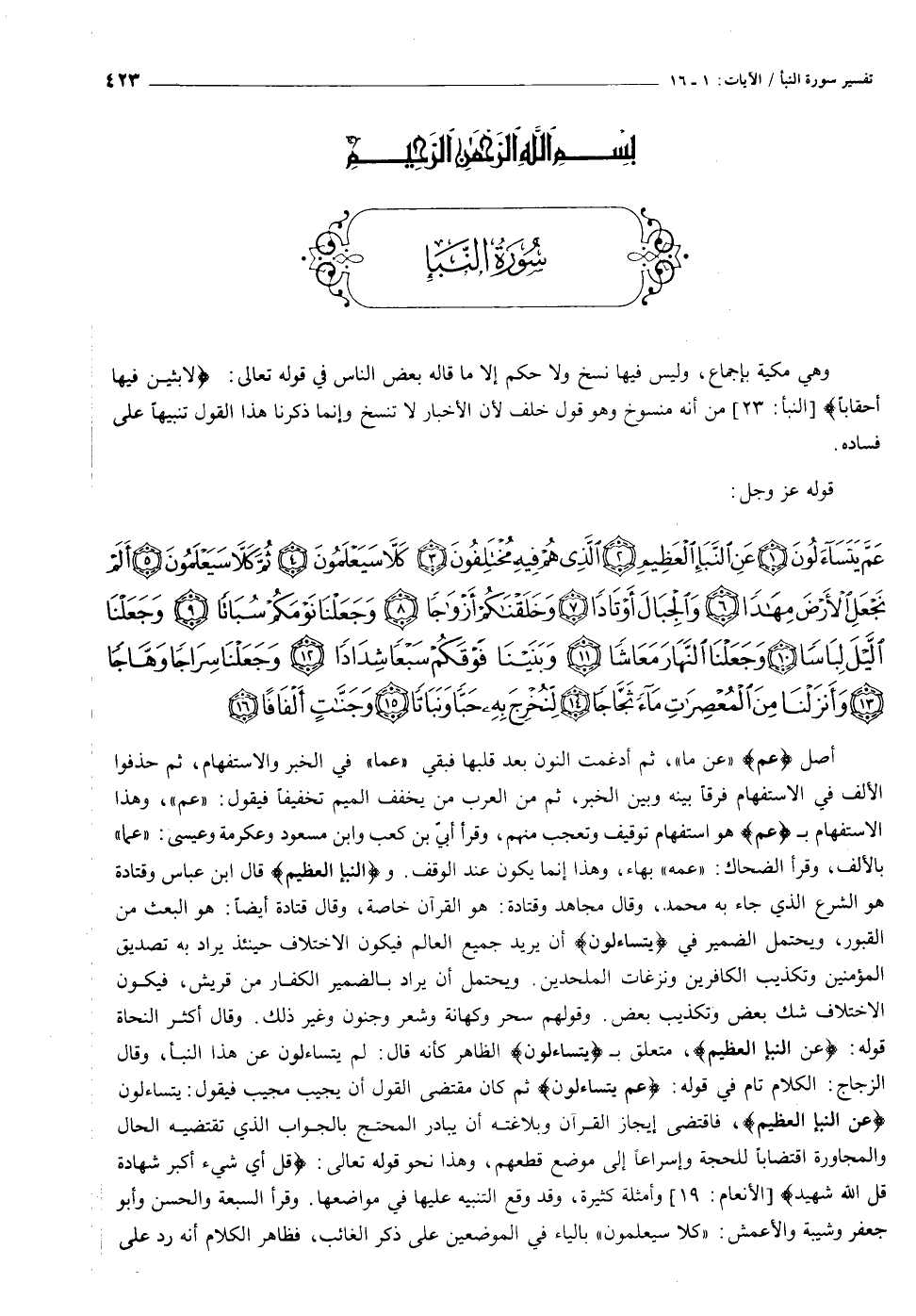 [سورة النبإ (٧٨) : الآيات ١ الى ١٦]