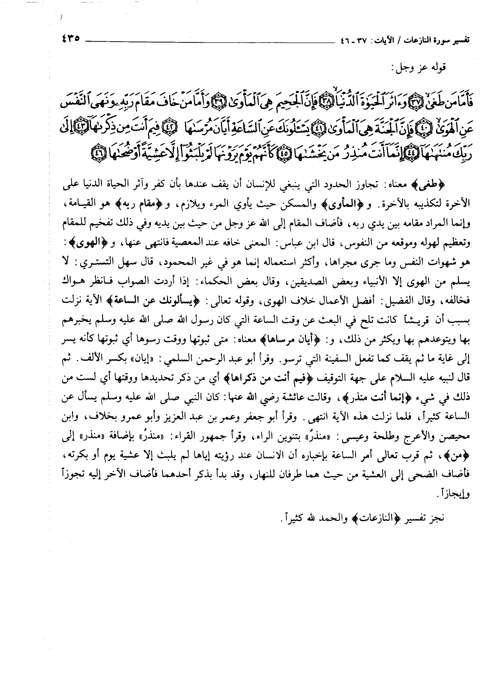 نجز تفسير النَّازِعاتِ والحمد لله كثيرا.