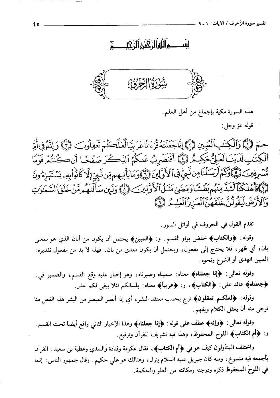 [سورة الزخرف (٤٣) : الآيات ١ الى ٩]
