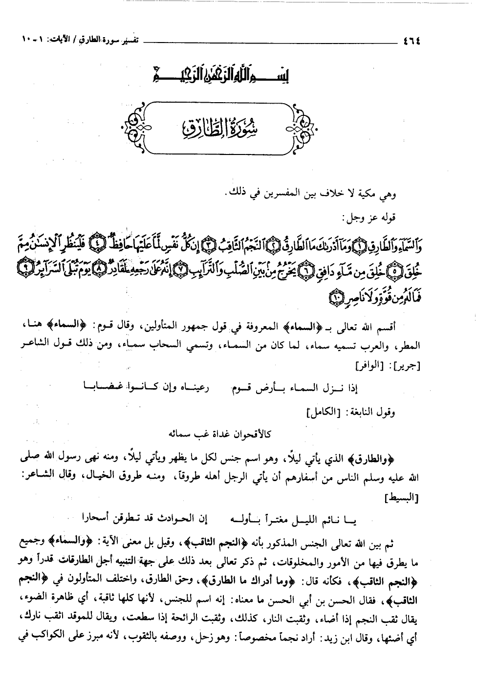 [سورة الطارق (٨٦) : الآيات ١ الى ١٠]