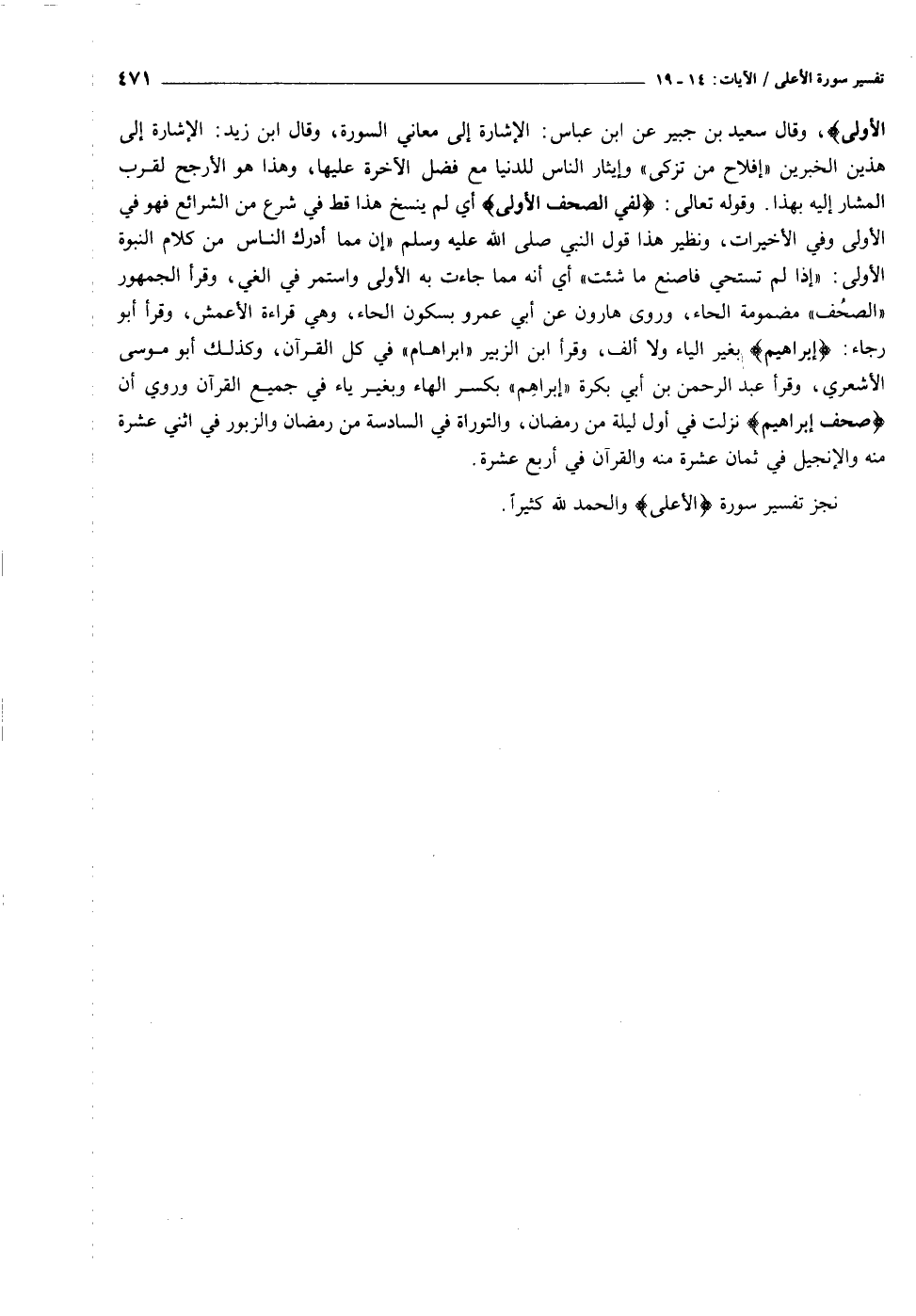 نجز تفسير سورة الْأَعْلَى والحمد لله كثيرا.