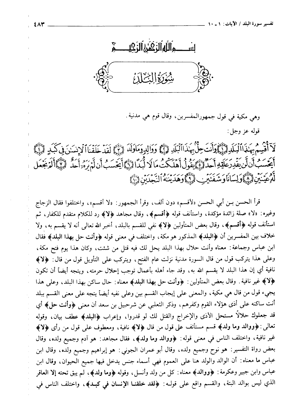 [سورة البلد (٩٠) : الآيات ١ الى ١٠]