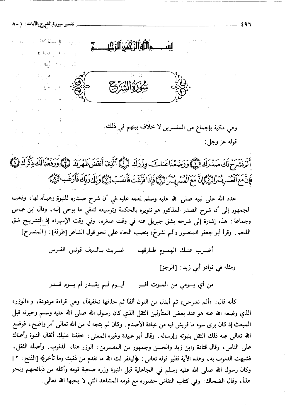 أَلَمْ نَشْرَحْ لَكَ صَدْرَكَ (١) وَوَضَعْنا عَنْكَ وِزْرَكَ (٢) الَّذِي أَنْقَضَ ظَهْرَكَ (٣) وَرَفَعْنا لَكَ ذِكْرَكَ (٤)