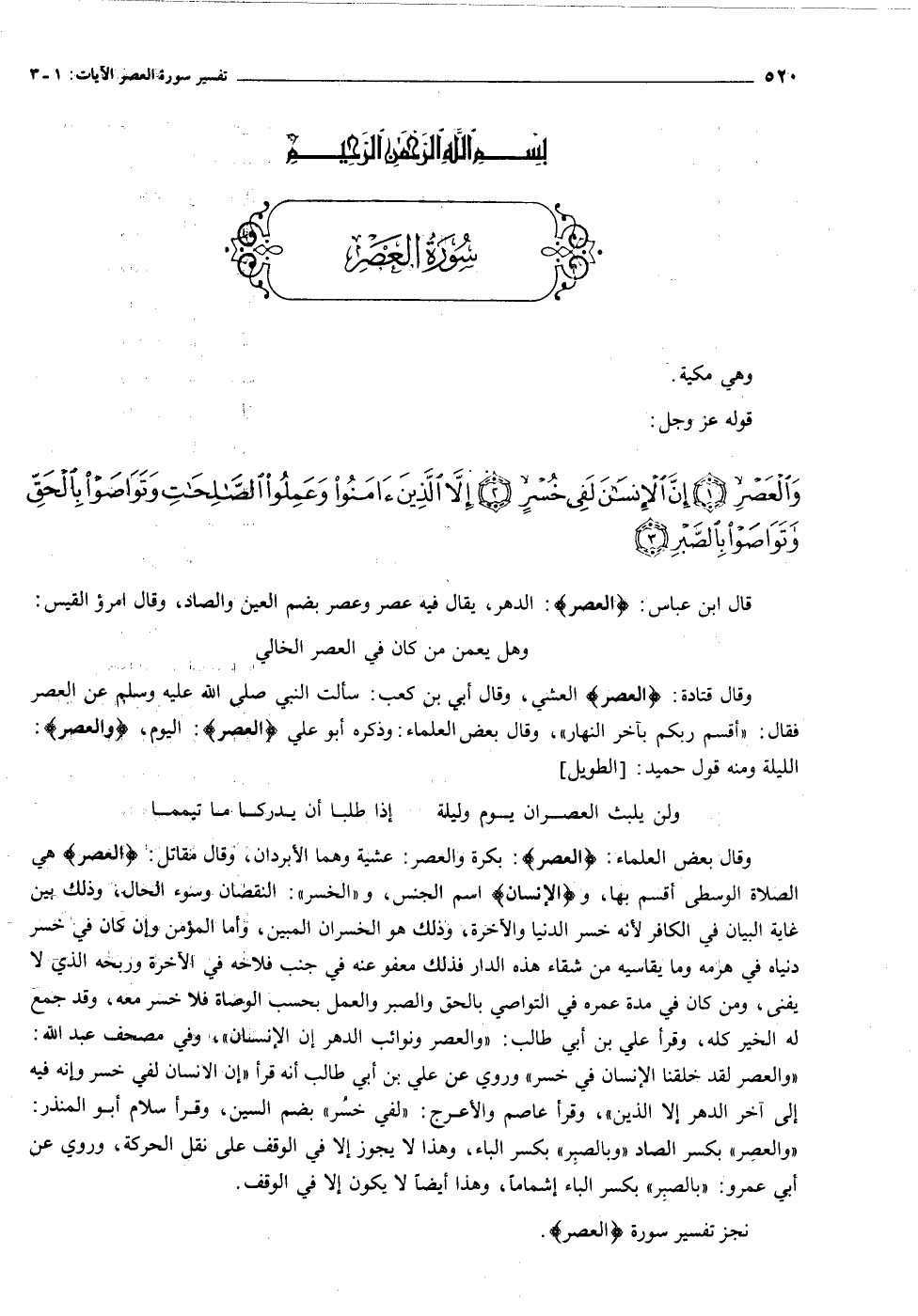 [سورة العصر (١٠٣) : الآيات ١ الى ٣]