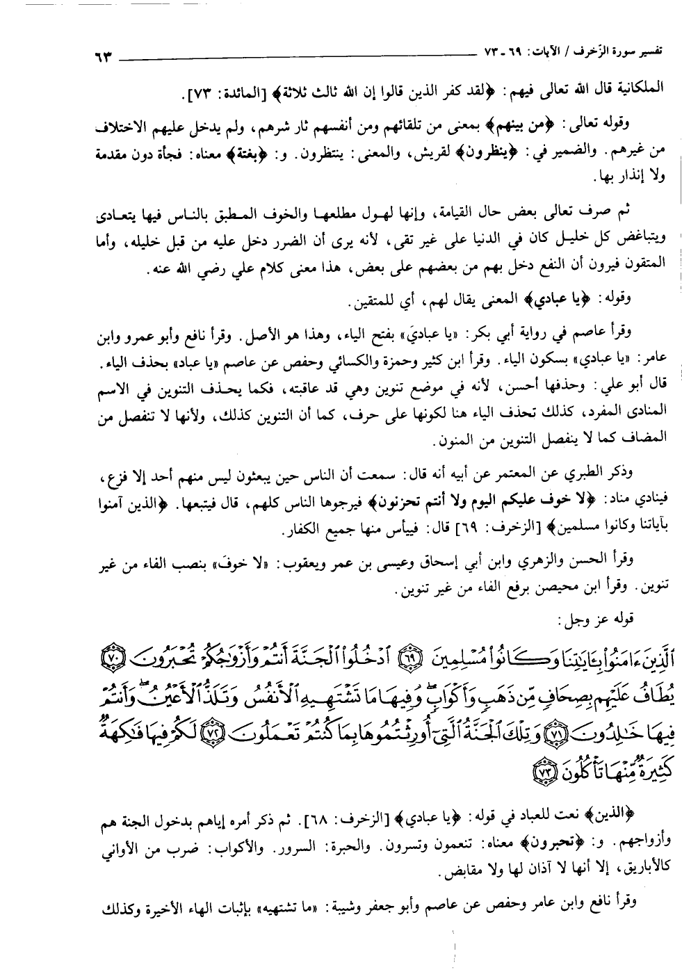 [سورة الزخرف (٤٣) : الآيات ٦٩ الى ٧٣]